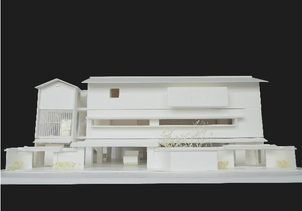 狭小敷地という環境で、素材や色彩など様式をはずした上でも、精神的なものが自ずと湧き出る空間であること。数寄屋建築の経験を経た古本が思う現代の茶室は、「精神の娯楽空間」である。